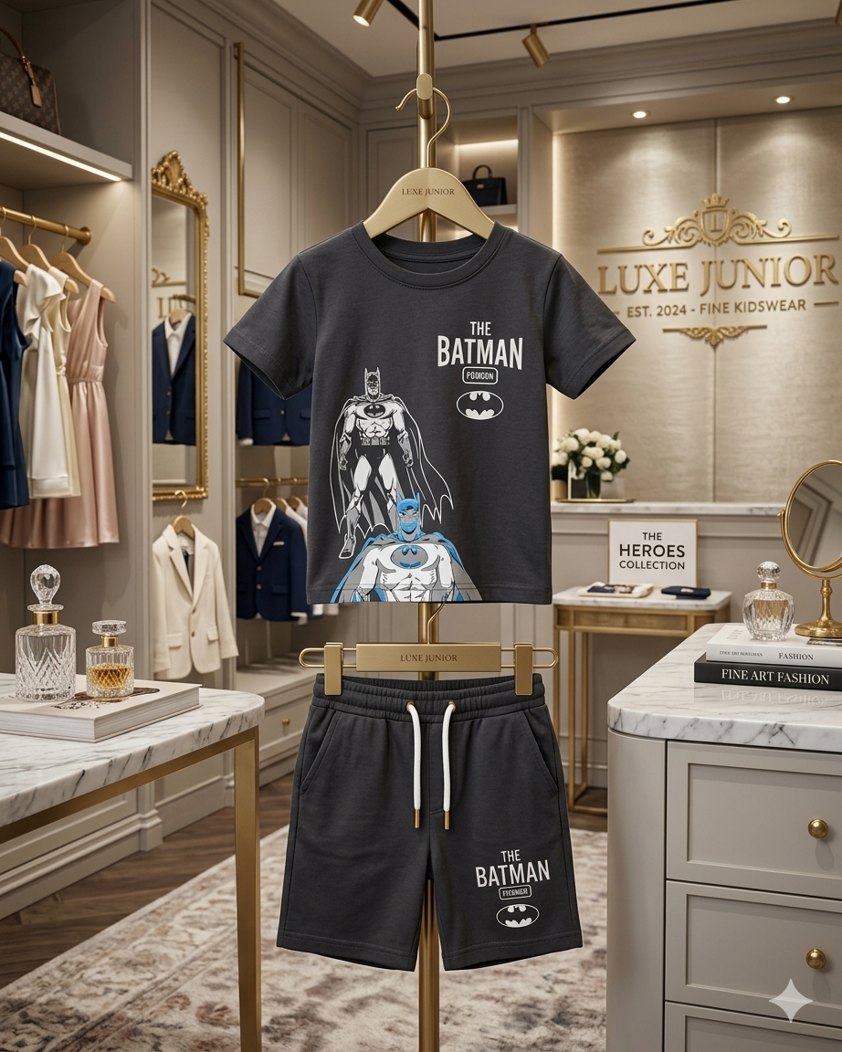Junior Republic Batman Printed Cotton Jersey T-Shirt & Shorts Set for Kids